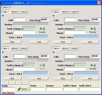 - Ky program e ka mundėsinė e kontrollimit deri nė 16 kabina, nė tė njejtėn kohė mund tė printoj faturat pėr secilen kabinė.Ka mundėsinė e administrimit tė tarifave dhe tė fitimit ku ju mund ti ndryshoni ēmimet e shitjes si dhe pėrqindjen e fitimit qė dėshironi ta vendosni nė callshopin tuaj. Ky program ju ndihmon shumė sidomos menagjerėve qė dėshirojnė tė dijnė sa mė shpejt dhe mė saktė totalin e punės qė ėshtė bėrė nė njė kabinė apo nė tė gjitha kabinat duke e pas mundėsinė e shiqimit edhe tėrė historinė deri nė 365 ditė. Ky program mund tė instalohet nė kompjuterin e administratorit prej ku edhe e kontrolloni postėn tuaj dhe tė gjitha tė dhėnat janė lokale dhe ruhen nė atė kompjuter.